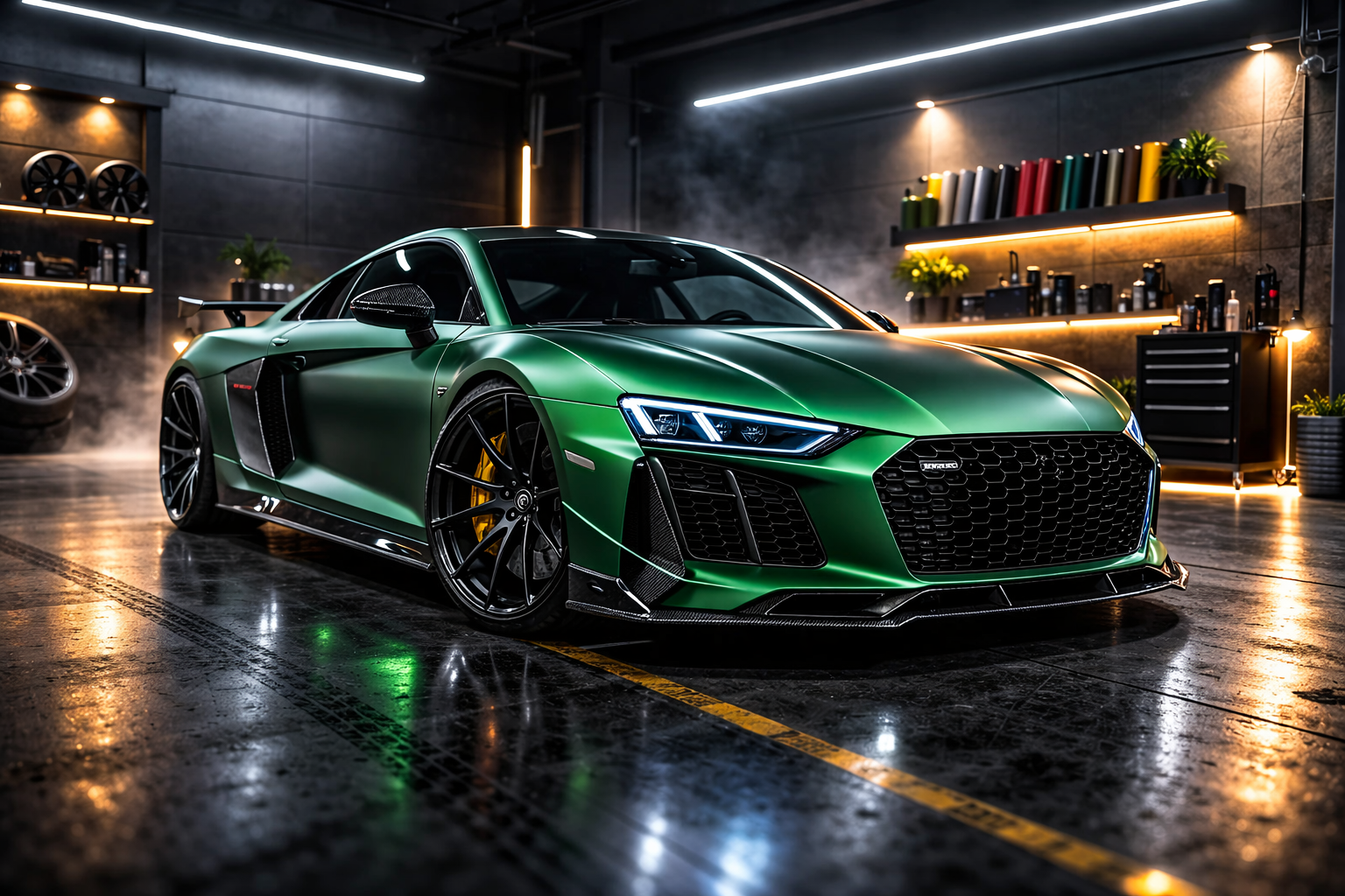 Folierungen und Lackschutzfolien werden exakt zugeschnitten und sauber verarbeitet, abgestimmt auf Form und Linie des Fahrzeugs. Die Ambientebeleuchtung ist vollständig in das originale Fahrzeugsystem integriert und direkt über das Fahrzeugmenü steuerbar.